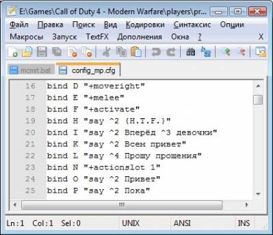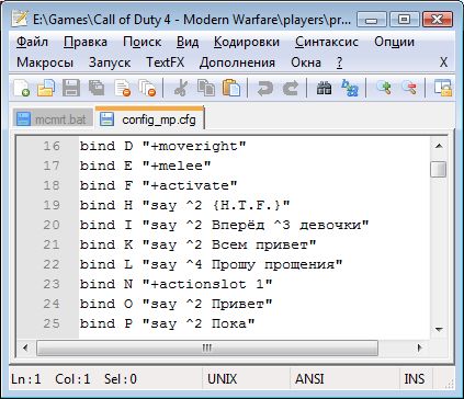 Для того,чтобы сделать быстрые сообщения в игре,надо: 1.Открыть блокнотом или другим текстовым редактором(Notepad+) файл config_mp.cfg находящийся по этому пути Call of Duty 4 - Modern Warfare\players\profiles\User. 2.Выбрать свободную клавишу на клавиатуре(незанятую настройками игры) и написать "say *******(ваше сообщение)" Пример на фото. 3.ТАБЛИЦА ЦВЕТОВ